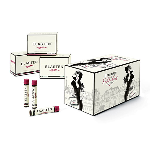 Die ELASTEN® Trinkampullen enthalten den speziellen [HC]-Kollagen-Komplex®. Vertrauen Sie dem Original für schöne Haut von innen, mit nachgewiesener Wirkung einer Verbesserung der Hautelastizität sowie dadurch bedingter Minderung von feinen Fältchen. Für Ihr strahlendes Aussehen.