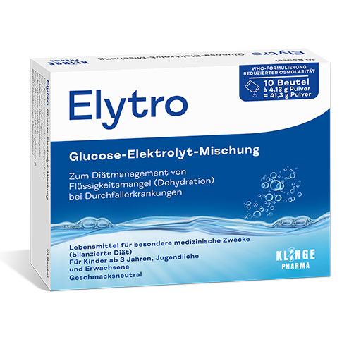 Elytro ist eine Mischung aus Glukose, Mineralstoffen und Salzen, welche den Körper unterstützt den Flüssigkeits- und Elektrolytverlust bei Durchfallerkrankungean auszugleichen. Die Formulierung entspricht 1:1 den aktuellen Empfehlungen der Weltgesundheitsorganisation (WHO)*. Diese Empfehlungen beruhen auf Studien, die eine verbesserte Wirksamkeit durch eine reduzierte Osmolarität empfehlen.