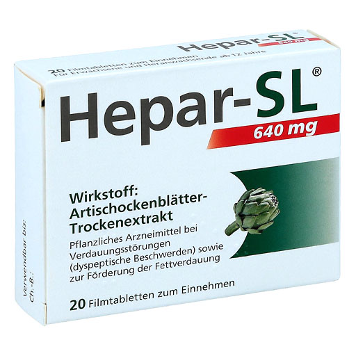 Die empfohlene Dosis beträgt für Erwachsene und Heranwachsende ab 12 Jahren 2-mal täglich 1 Filmtablette. Nehmen Sie Hepar-SL® 640 mg zu den Hauptmahlzeiten unzerkaut mit ausreichend Flüssigkeit (vorzugsweise 1 Glas Trinkwasser) ein.