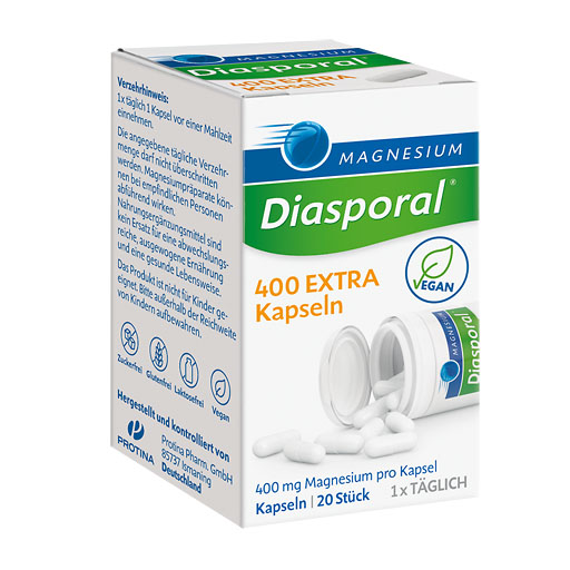 Die Kapseln sind geschmacksneutral, klein und damit leicht zu schlucken. Das ermöglicht eine schnelle Einnahme und macht sie zu einem praktischen Begleiter im Alltag. Die wiederverschließbare Dose ist auch für unterwegs geeignet. Magnesium-Diasporal® 400 EXTRA Kapseln sind die ideale Produktvariante für alle, die im Alltag viel in Bewegung sind.