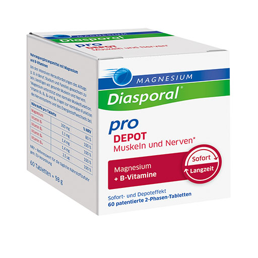 Um den intensiven Herausforderungen des Alltags (z.B. in Beruf, Studium und Familie) gewachsen zu sein, benötigen wir gesunde Muskeln und Nerven. Hierzu leistet Magnesium-Diasporal® Pro DEPOT Muskeln und Nerven einen sinnvollen Beitrag: