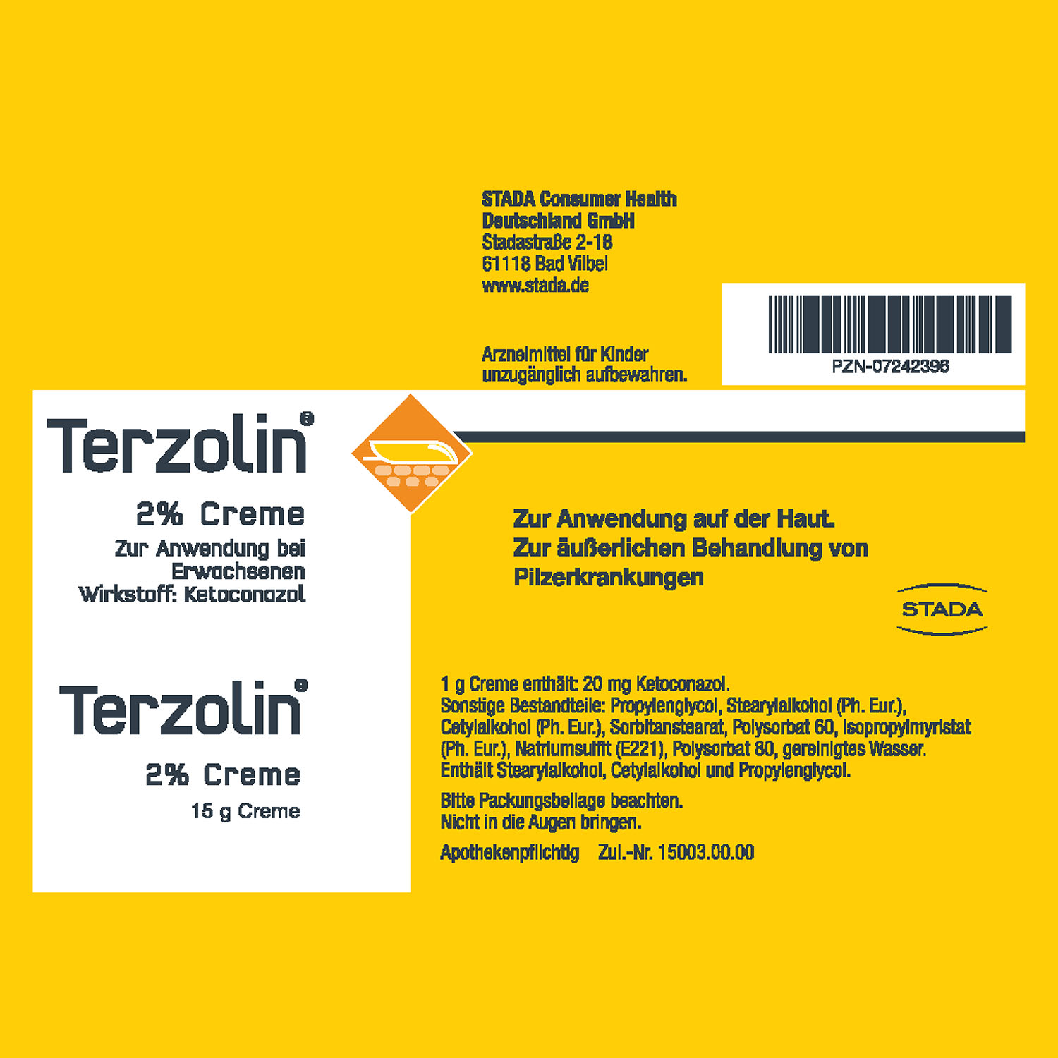 Terzolin® 2 % Creme ist ein pilzabtötendes Arzneimittel zur äußerlichen Behandlung von entzündlichen Hautveränderungen mit Schuppen und Juckreiz (seborrhoischer Dermatitis oder seborrhoisches Ekzem) und Kleienpilzflechte (Pityriasis versicolor). Erste Anzeichen einer Besserung sind gewöhnlich bereits 4 Wochen nach Anwendungsbeginn zu erkennen.