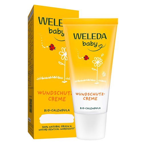 Die Weleda Calendula Wundschutzcreme schützt die empfindliche Haut in Babys Windelbereich auf natürliche Weise und beugt dem Wundwerden vor. Mandelöl und ein wertvoller Auszug aus Bio-Calendula und Bio-Kamille beruhigen bei gereizter und geröteter Haut. Zinkoxid schützt zuverlässig vor Nässe.